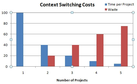 А если вам приходится работать более чем над двумя разными проектами, то потери времени на переключение возрастают в геометрической прогрессии.